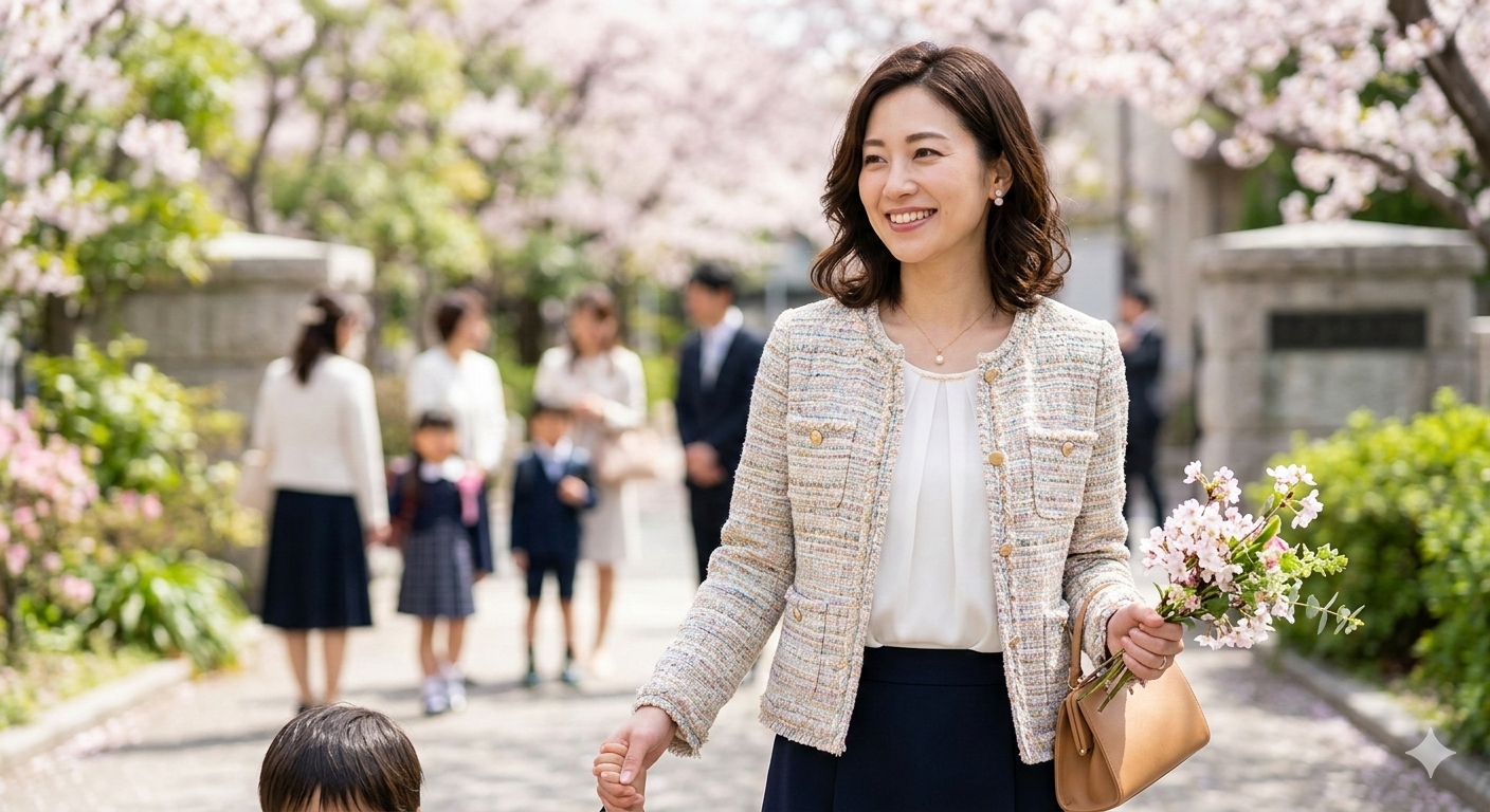 入学式など、より華やかさが求められるハレの日にふさわしい1着。