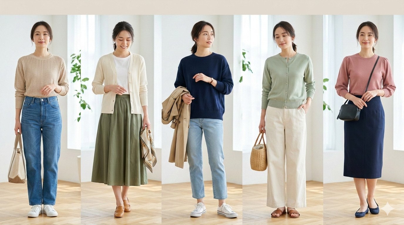 - おすすめシーン: きれいめオフィスカジュアル、春の通勤スタイル。